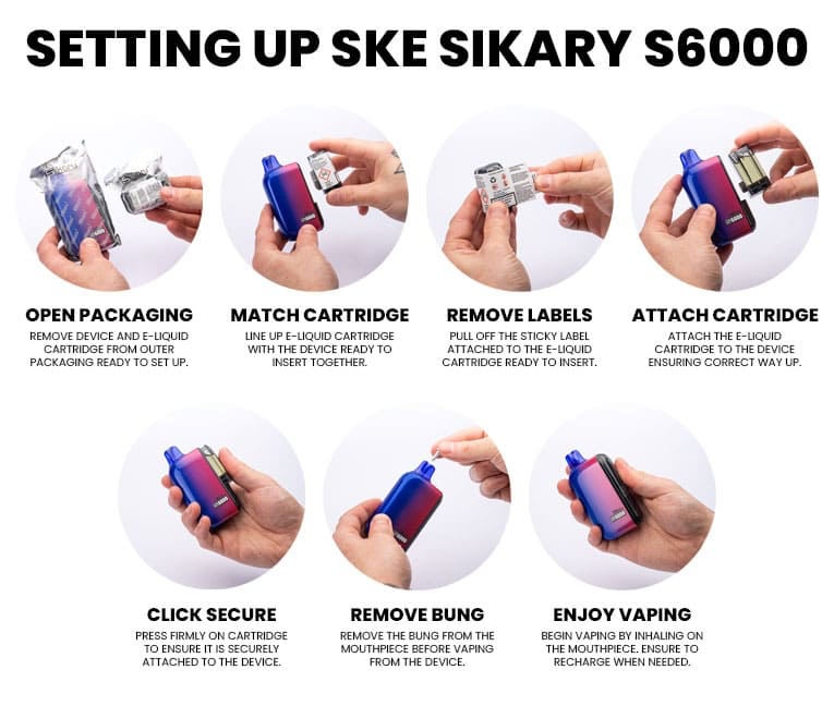 To use the Sikary Vapes, follow the instructions below:
